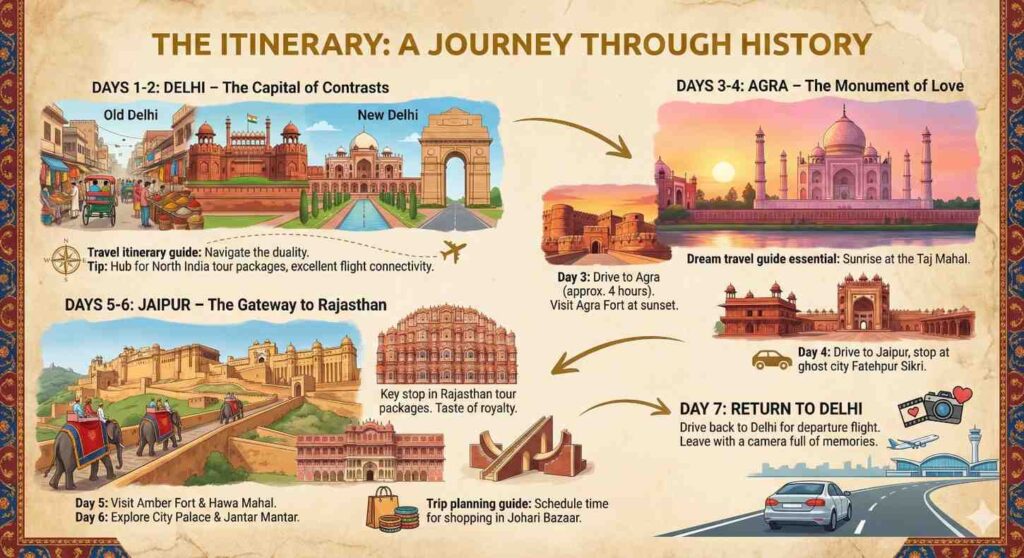 For most beginners, the answer is clear. A 7 Day India Itinerary for First Timers focusing on the Golden Triangle (Delhi, Agra, and Jaipur) is the perfect introduction. This Ultimate travel guide breaks down exactly how to navigate this iconic route, helping you choose the best North India tour packages for your style and budget.