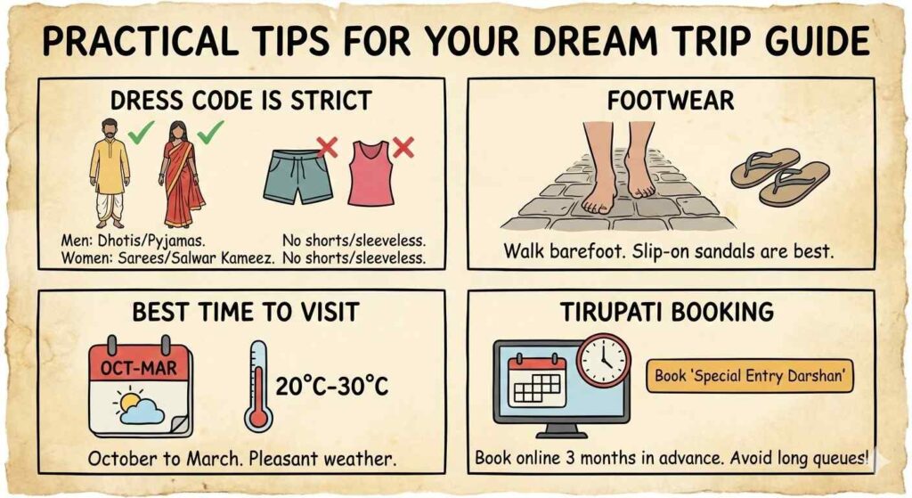 4. Tirupati Booking: If Tirupati is on your list, book the “Special Entry Darshan” online at least 3 months in advance. The free queue can take 10-15 hours!