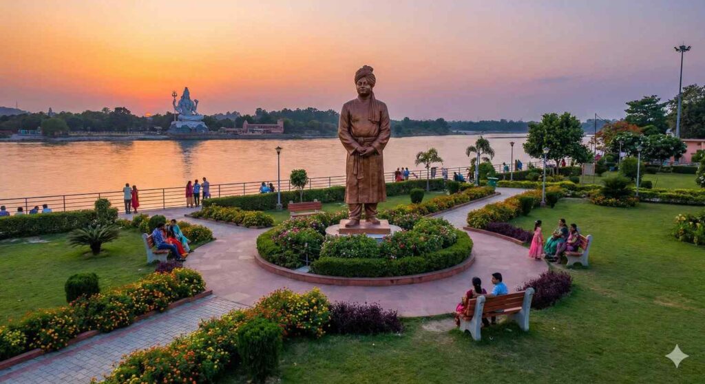 After a long day of walking and sightseeing, this park near Har Ki Pauri offers a moment of rest. Dominated by a majestic statue of Swami Vivekananda, the park features well-manicured lawns and a direct view of the imposing statue of Lord Shiva across the river. It’s the perfect spot for an evening stroll visit places in Haridwar.